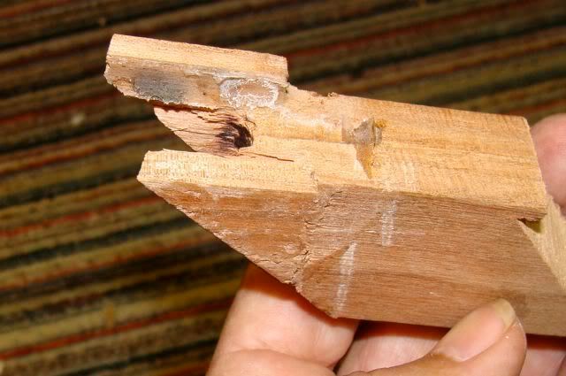 There was about 3/4 inch of the end of the triangle glued into the neck. And that part was weakened by drilling through it for a dowel.