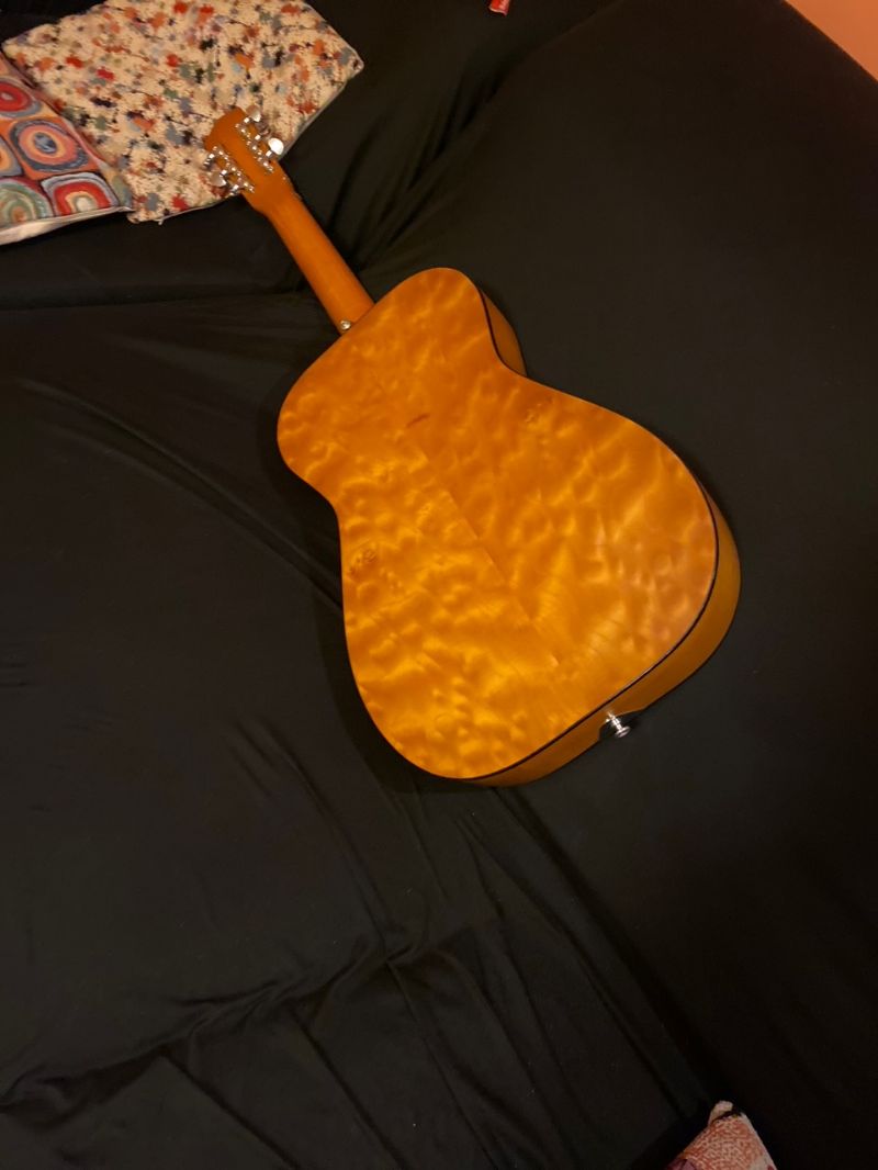 That is some beautiful quilted maple (not flame), and when you read the article I linked below, apparently it is solid maple as opposed to laminate, like the vast majority of Dobro guitars throughout history.