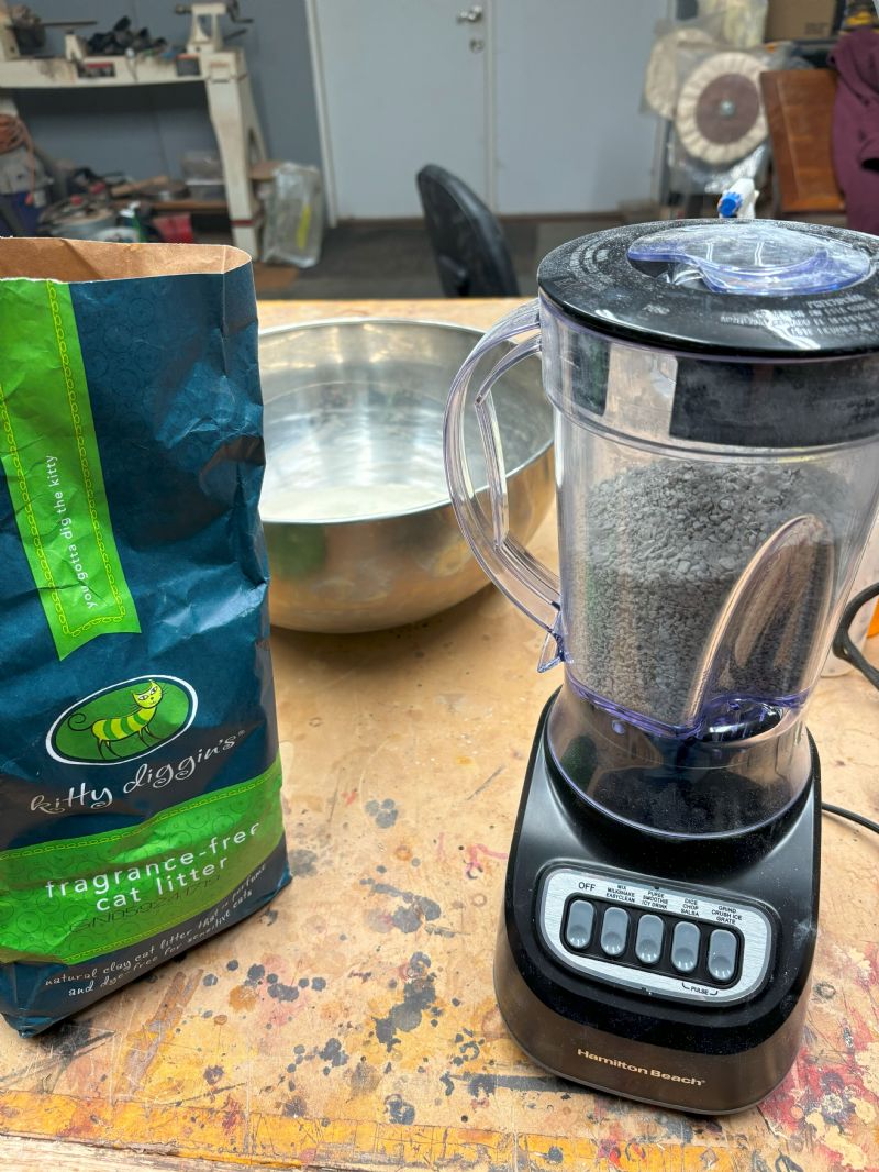For clay, as per several videos on YouTube, I used the recommended kitty litter and ground it to dust using a blender.