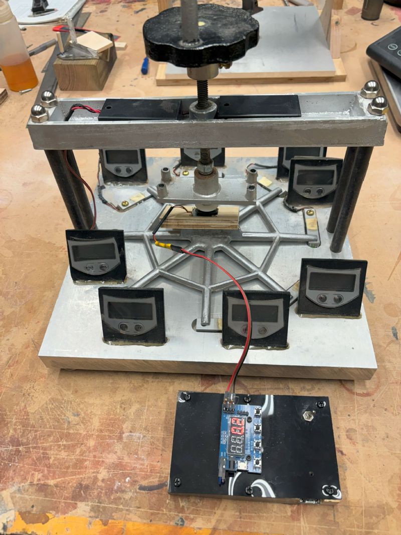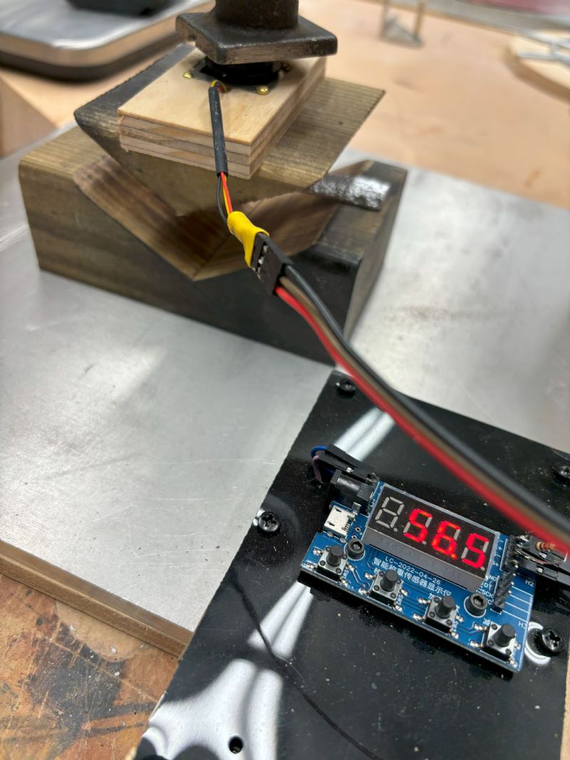 A way to verify the math was to build a scale that measured the force of each leg under pressure, and another scale that measured total force on the bridge. After several attempts I was able to build a test platform that, with reasonable accuracy, did both.