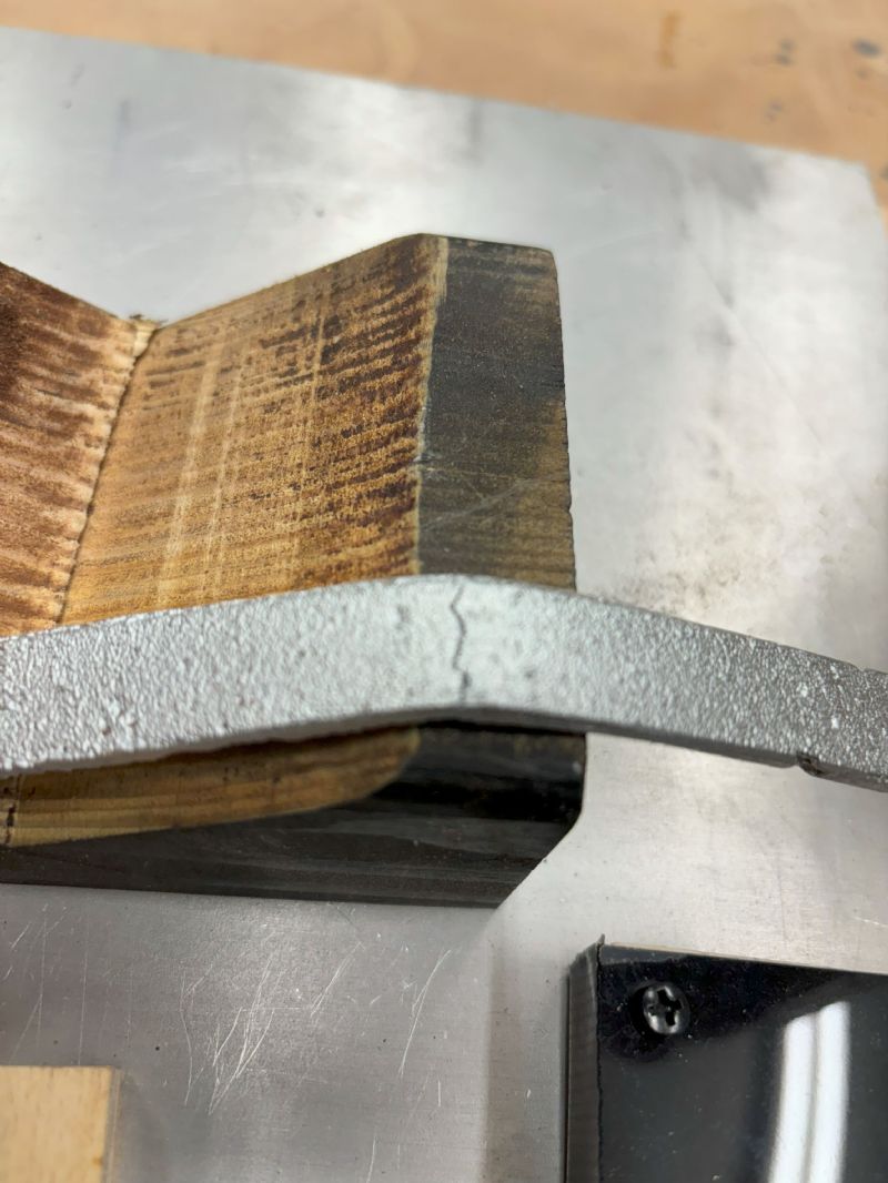 At this point I want to ensure that the alloy, thus the spider, is worth going forward. I mentioned earlier that along with the spider I also made a test strip. I want to gauge malleability... is the metal too soft or too brittle to be of use. To do this I measure how much force it takes to bend the 5 x 1/2-inch test strip 30 degrees without breaking. Although I lost my data from previous castings, I do recall that the optimal force was between 35 to 50 pounds. In testing this alloy it took 50 pounds of pressure to begin bending and a bit more force to get it to about 20 degrees before it broke. That put this alloy above what I would consider acceptable. But this cast is for demo purposes, so I'll trod on.
