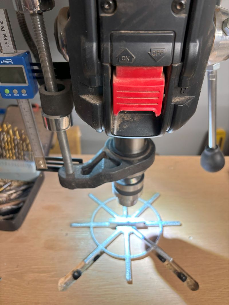 After milling the spider the next step is to add a slight arch to the legs. I shoot for the base of the spider to be .20 to .25 inch above plane. This is where things can go south fast. If the alloy is too brittle a leg will break before it bends. It takes a little practice and patience to perfect this operation, the object being not only to get the correct height but have the tip of each leg as close to plane as possible.