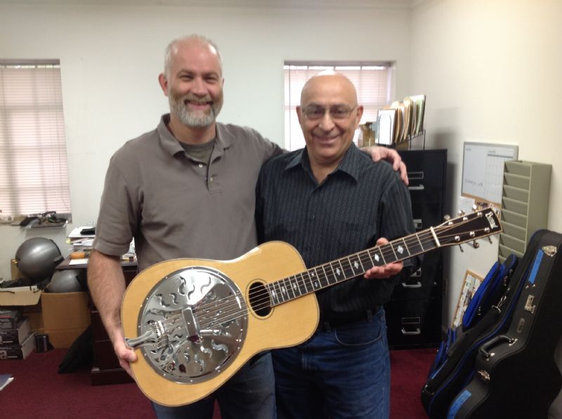 December 12, 2014 - my "happy day"! Paul Beard delivering my "Mighty O" aka Beard E Odyssey Square neck, Rosewood back and sides, Spruce top. Almost ten years in and it sounds better every day!