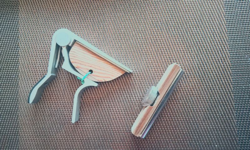 The other one looks very much like the old Beard capo that Paul stopped producing 14-15 years ago, though yours has a wooden top rather than the brass Paul used. How does it sound? The Beard had a bone edge on the bottom that contacted the tops of the strings. If yours is wood and there is nothing else underneath I wonder if that might mute the tone.