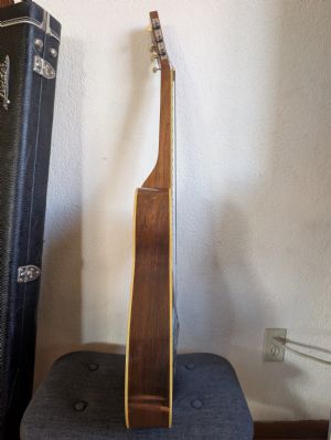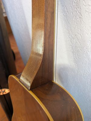 Here are the other photos moved into the thread. It does indeed appear to be a Model 125. Beautiful four piece (laminate or ply) walnut back. That's the photo I really wanted to see. And like Eric I was curious about the neck profile. That's all for now, I need to head over to the supermarket.