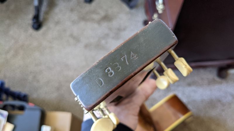 The serial number is circa 1933 (Los Angeles) and it is a couple hundred numbers from my California-built Model 37. Is the second numeral on your guitar a 3 or an 8? Mine is in its case and I think it's #3675. But the typical Model 37 had a much darker finish. Another oddity regarding the serial number - it includes a "D" which indicates a wood body, but I'm about 98% sure that they didn't start using this letter until after the Dopyeras regained the Dobro name in 1970, and they didn't use the D for the first several years at that time. Maybe Rudy added the "D" as an early idea for what would later become an additional piece of identification in the OMI Dobro era.