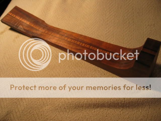 Vic ,..Its 100 + yr dry ,.... black walnut neck material with koa stripe . Found the walnut in an old corn crib under a rotted tarp ,...cross cut slabs 28" x 3" 10' long . The elderly woman (mid ninties) said her uncle cut it when she was 4 yrs old . I acquired it eight yrs ago .