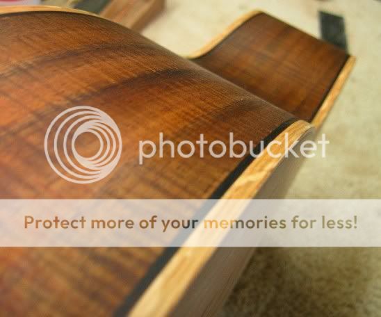 Here is some of the wood that will become my Hook, Koa body and sides and American Chestnut for binding. The one piece that is bent is actually going on another reso he is building, but mine will look the same.