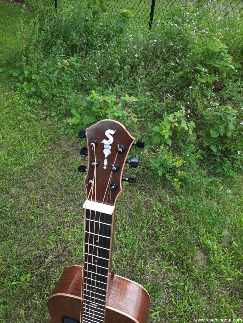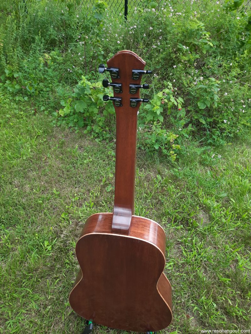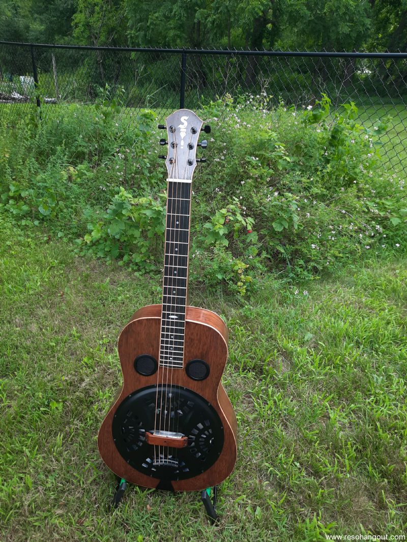 All Honduran mahogany squareneck resonator guitar. Large body, 25" scale.2-piece mahogany neck. Wenge headplate. Ebony fretboard. Maple binding. #14 spider. Legend cone. Composite capped maple saddles. Gotoh SG381 tuning machines.Powder coated matte finish screens, coverplate, and tailpiece. Internal sound post design with custom central baffle. Includes a quality Access Stage One hardbag. Offers considered. More information about my builds here: jackstepickluthier.blogspot.com/