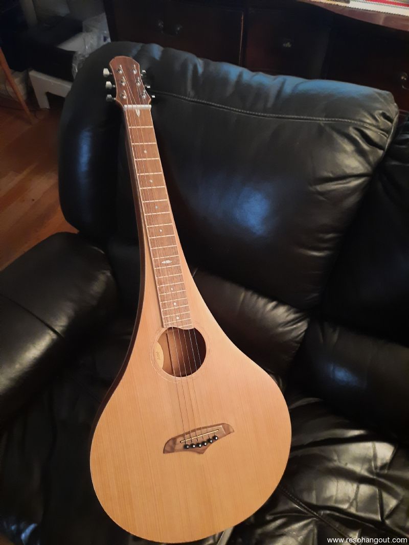 Jack Stepick teardrop style weissenborn. Vintage western red cedar top, Honduran mahogany back and sides. Maple binding. Walnut headplate and fretboard. Walnut bridge, brass saddle, ebony bridge pins. Includes Gator padded gig bag. Free shipping to lower 48 states. Offers considered. More information on models here: jackstepickluthier.blogspot.com/