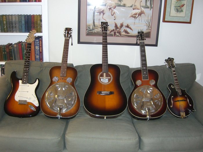 Including my Dobros, my Strat, my Recording King and Kentucky mandolin.