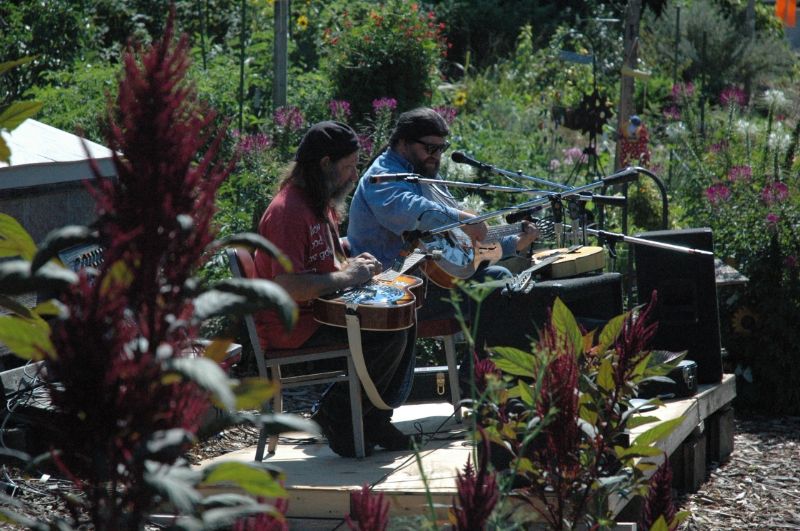 A Different angle where you can see some more of that garden. Leo's playing a Regal Squareneck and Don's playing a National Estralita Deluxe roundneck