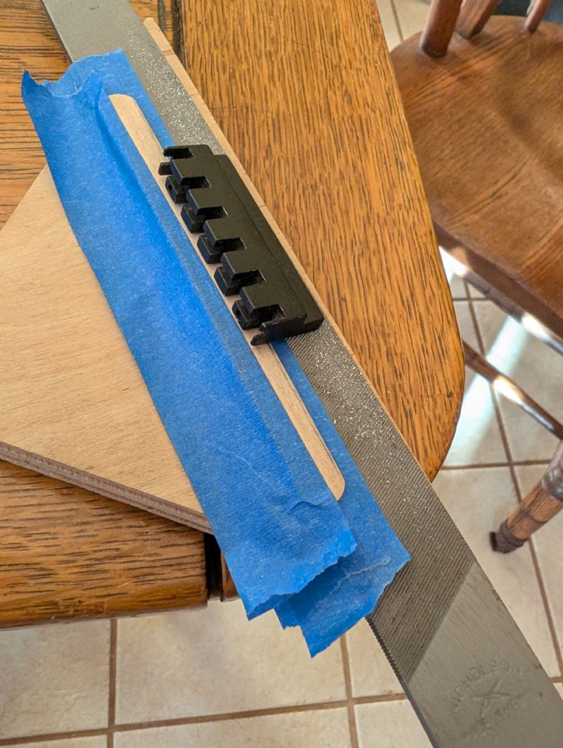 I had to cut a piece of aluminum stock to go under the Roller nut assembly, which I did with a hacksaw and flat file on a vise. If I can figure out posting pics here, I’ve included them