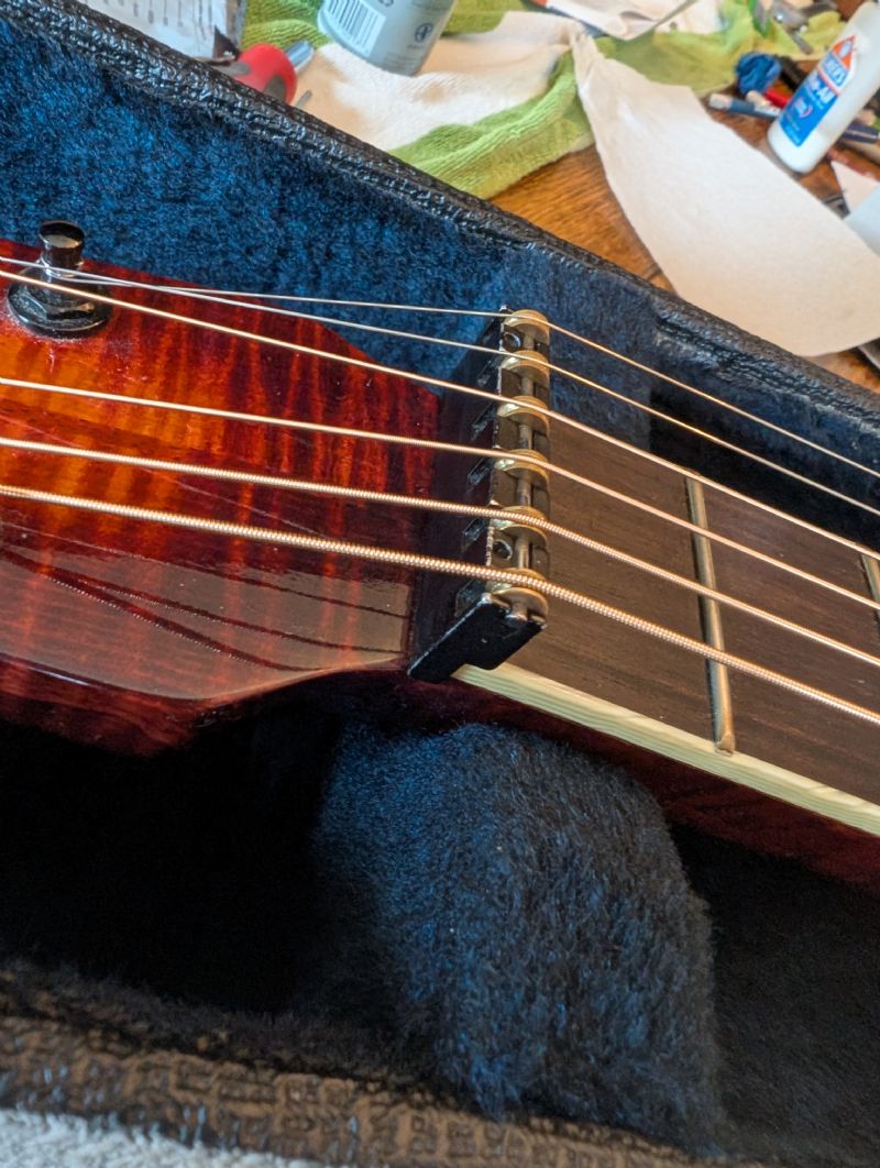 Need to amend my comments on National Scheerhorn string height at nut. As I recall (and seemingly validated by a quick search), the original height was approx 7/16”. In any event, installing the roller nut brought that up a smidge to approx 1/2”, same as my other DoubleShot / roller nut equipped resonators.