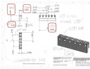 For your reference, this is a markup with the dimensional discrepancies circled. If anyone happens to have a new roller nut and calipers/micrometer, feel free to share your measurements.